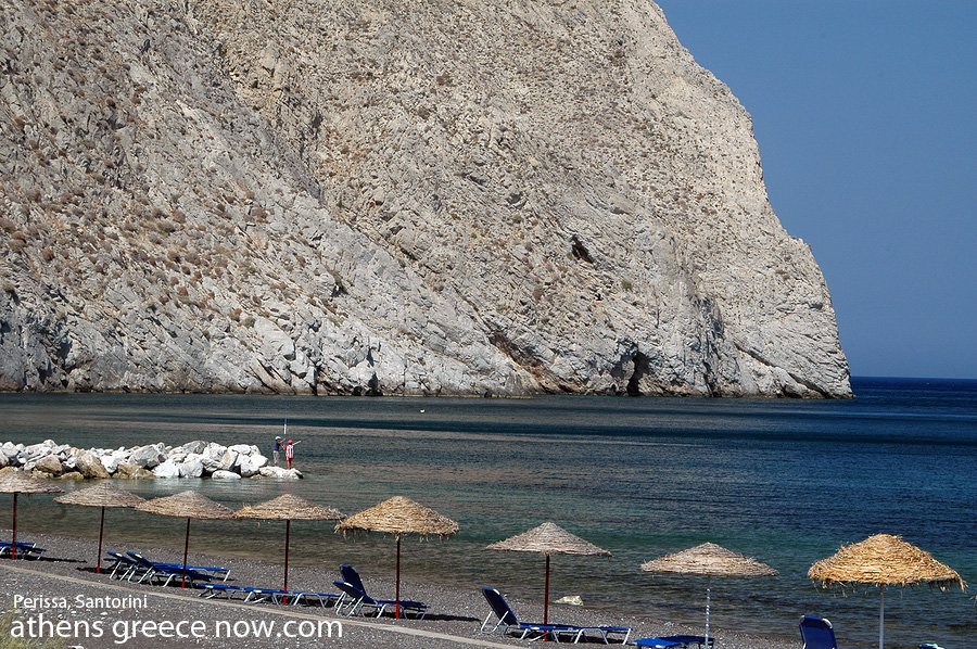 The other high appeal of this area is the many beaches. The most famous beaches are Perissa, Kamari and Monolithos. Located on the tourist side of the island these beaches are where many of the hotels, cafes and bars can be found. The beaches in this area are made up of black sand and have deep blue water. Another, the Red Beach, is made up of black and red volcanic rock and is located on a quieter area or the island.